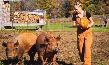 Nothing wasted: A southern Missouri homesteader feeds leftover pumpkins to her hogs, turning fall scraps into winter sustenance.